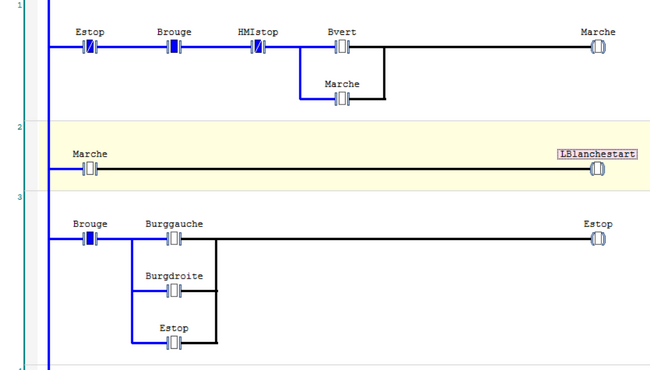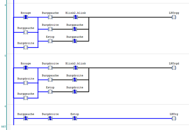 Créer la logique en FBD permettant de faire clignoter les boutons d’arrêt d’urgence lorsqu’ils sont actionnés.