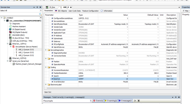 | Drive non détecté | Vérifier que le Sercos Master est bien ajouté sous Ethernet_1 |