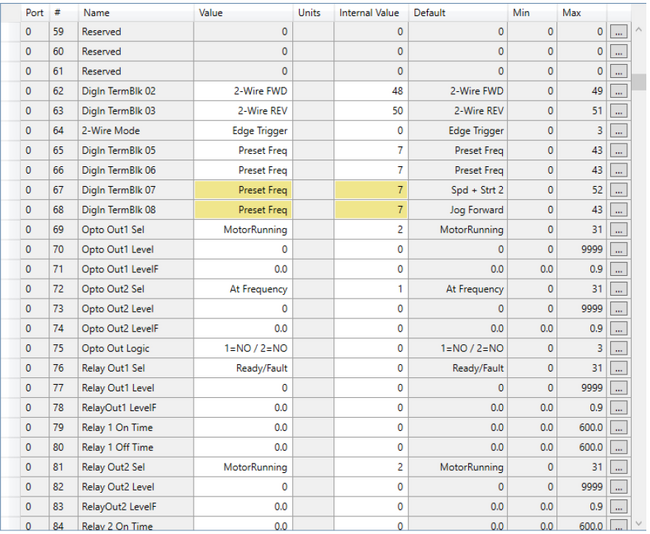 Paramètres par défaut de la Drive 525
