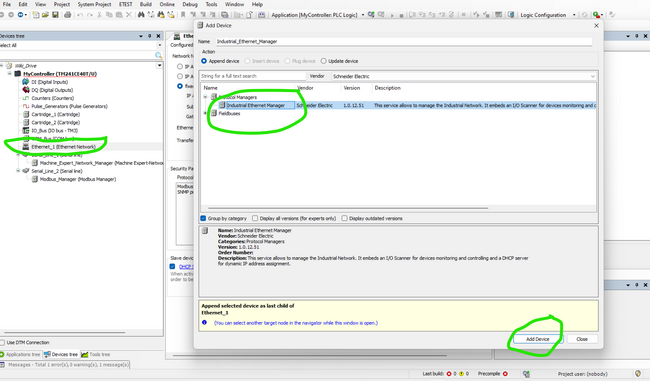 Cliquez sur le + sur Ethernet et allez sur Industriel Ethernet Manager . Ensuite, Cliquez sur Add Device .