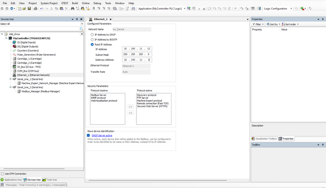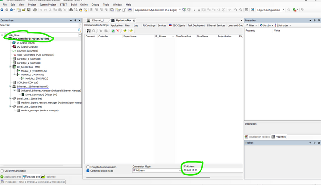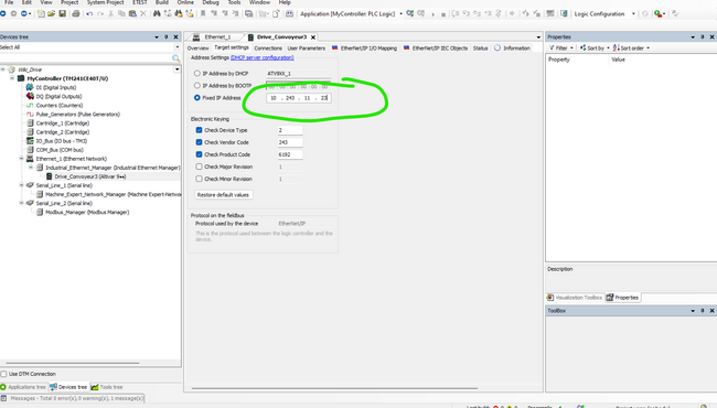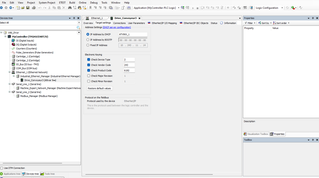 Ouvrez Machine Expert et créer un nouveau projet. Ensuite, Double cliquez sur Ethernet_1(Ethernet Network) pour ajouter l'adresse IP de votre PLC.