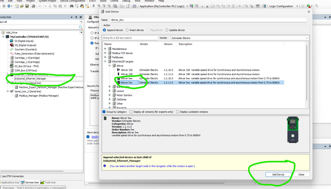 Ensuite, cliquez sur le + sur Industriel_EThernet_Manager et ajoutez la drive Altivar