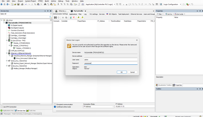 Allez dans le Controller pour renter l'adresse IP correspondante à celle de votre PLC