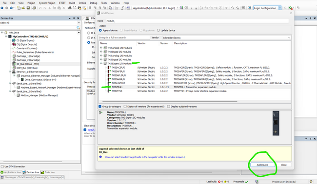 Cliquez sur le + de IO_Bus, ensuite ajoutez le Transmetteur et le Récepteur
