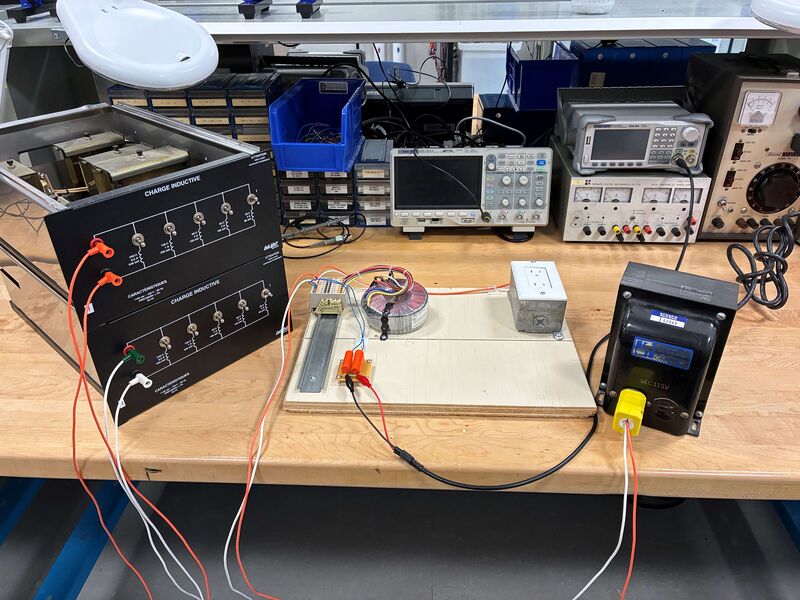 Afin d'injecter des ondes supra harmoniques sur une tension alternative résidentielle, nous devons utiliser une transformateur adapté aux hautes fréquences. Celui sélectionné possède deux primaires et deux secondaires qui peuvent être agencés de différentes manière en fonction des tensions avec lesquelles nous travaillons. Pour notre cas, il y aura le 120VAC au primaire et un générateur de fonction (c'est ce qui générera les ondes supra harmoniques) du C-2702 au secondaire. Notre branchement sur le transformateur doit à la fois réduire l'impact de la tension résidentielle sur le générateur de fonction et permettre aux ondes supra harmoniques d'avoir la plus grande force possible au primaire du transformateur qui est en parallèle avec l'équipement sous essais. Ainsi, nous avons branché les deux primaires en série pour augmenter le nombre de tour et nous utilisons uniquement un des deux secondaire pour réduire le nombre de tour, ce qui crée un rapport de transformation répondant à nos besoins.