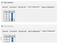 - Pour la Carte analogique, il faut aller dans les sections Input et Output Configuration pour activer les entrées et les sorties de la carte. Pour cela, cocher tous les Channels.